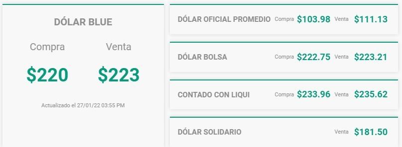 En el mercado bursátil, el dólar contado con liquidación (CCL) sube 1,4%, a $ 232,25; mientras que el MEP avanza 3,3%, a $ 224,10, en el tramo final de la rueda.