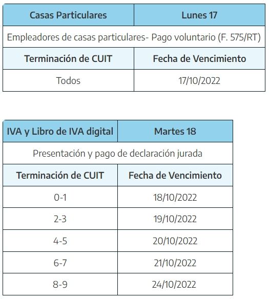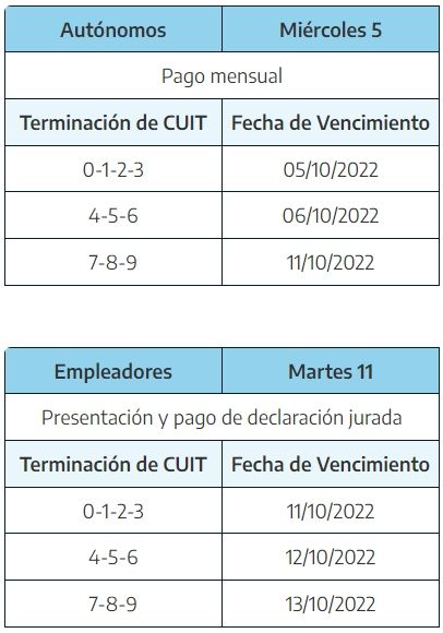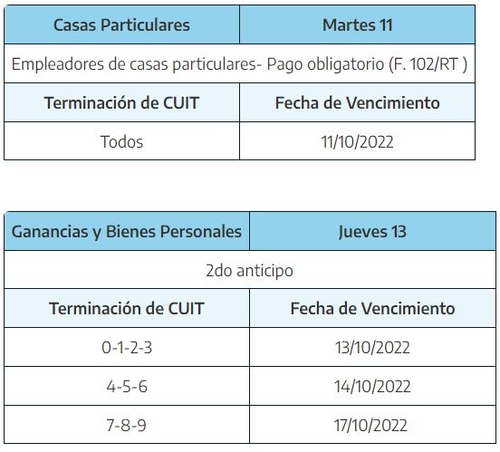 AFIP dio a conocer el calendario de vencimientos para octubre