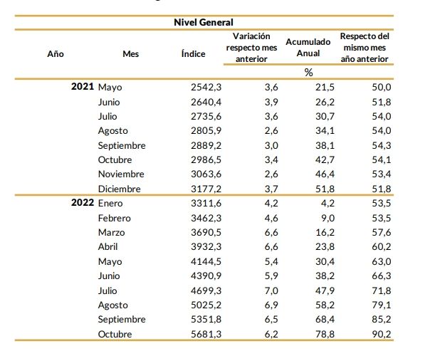 El acumulado anual es de 78,8%, mientras que el interanual, es decir, tomando en cuenta el mismo mes pero de 2021, es de 90,2%.