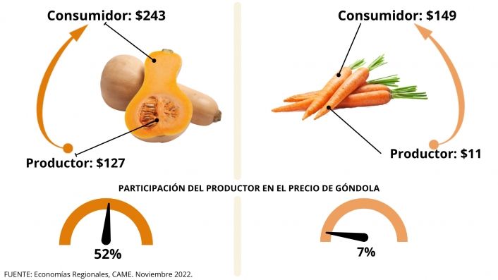 En el caso de la calabaza (1,9), el producto con la brecha más baja por segundo mes consecutivo, los precios al productor aumentaron un 1% y al consumidor, un 14,5%.