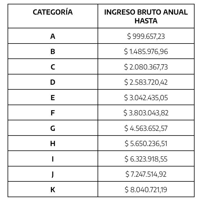 Los nuevos topes de facturación por categoría a tener en cuenta por los contribuyentes para cuando se habilite la recategorización son los siguientes: