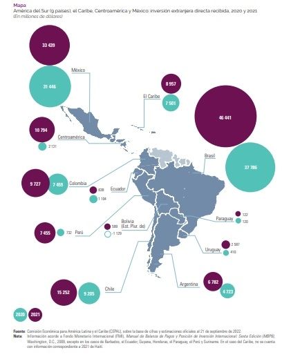Y precisó: "La gran incertidumbre en relación con la duración y las consecuencias de la guerra en Ucrania hacen extremadamente difícil estimar el comportamiento de las entradas de IED en América Latina y el Caribe en 2022".
