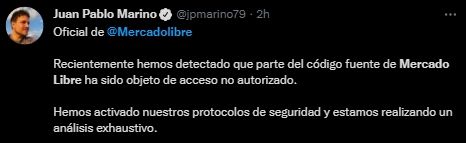 "Recientemente hemos detectado que parte del código fuente de Mercado Libre, Inc. ha sido objeto de acceso no autorizado. Hemos activado nuestros protocolos de seguridad y estamos realizando un análisis exhaustivo", indicó Mercado Libre en un comunicado.