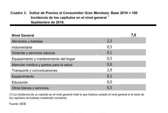 A nivel local, la Dirección de Estadística e Investigaciones Económicas (DEIE) detalló que la inflación de marzo fue de 6,6% ligeramente inferior. Pero el dato llamativo es que en septiembre de 2018, durante la gestión del expresidente Mauricio Macri, la estadística en Mendoza fue de 7,6%.