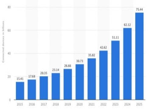 Hoy, dos décadas más tarde, la tecnología IoT es una revolución imparable. Los objetos que se conectan a internet están creciendo exponencialmente. De hecho, las estimaciones más recientes predicen que, para 2025, habrá 75.440 millones de dispositivos en funcionamiento con un valor de mercado de 900 billones de dólares.
