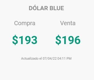El dólar blue cerró la jornada de jueves sin cambios en su precio y cotiza a $196. Fuentes del mercado estimaron que la autoridad monetaria finalizó la jornada de hoy con un saldo positivo de alrededor de US$ 1 millón.