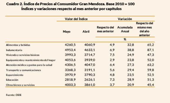 Este martes se dio a conocer que la inflación de mayo en Mendoza fue de 5,4% con una acumulación de 30,4% en los primeros cinco meses del año. En tanto, la variación interanual ya llegó a 63%.
