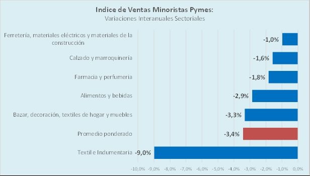 - Indumentaria, Lencería y accesorios: las ventas disminuyeron 9% anual y 13,8% mensual.