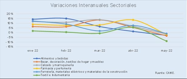 - "Para el comercio, mayo fue un mes limitado por los aumentos de precios y costos, que debilitaron su rentabilidad y el ánimo del consumidor";