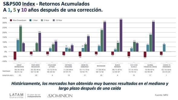 Rendimientos pasados no garantizan rendimientos futuros, pero las estadísticas demuestran que un proceso a la baja puede resultar en una gran oportunidad de compra. Quienes tengan capital que no vayan a utilizar en el corto plazo y quieran adquirir buenos negocios a buenos precios, no deben dejar pasar este momento.