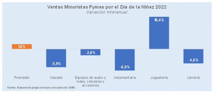 Las ventas por el Día de la Niñez en los comercios minoristas pyme subieron 1,6% en términos reales frente a la misma fecha del año pasado, impulsada por el aumento en el rubro Jugueterías, que tuvo un aumento anual de 10,4%.