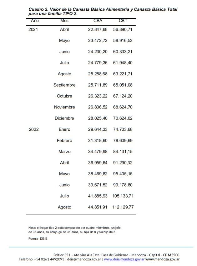 Una familia mendocina necesitó más de $110 mil para no ser pobre en agosto