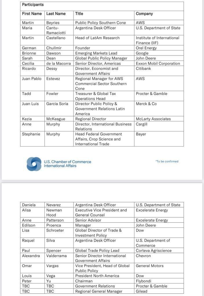 Posteriormente, se esperan anuncios de inversión de empresas alimenticias y en la Embajada Argentina en la capital de los Estados Unidos recibirá a directivos de las firmas Lamb Weston, la principal compañía de papas de América del Norte, y Tyson Foods, empresa líder en producción de proteínas.