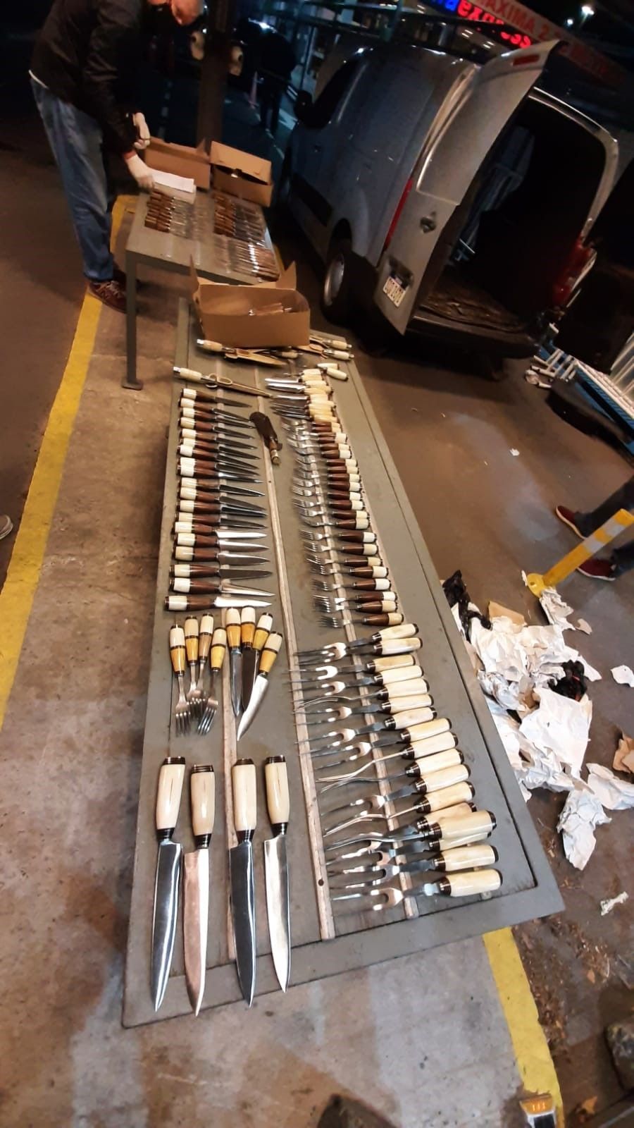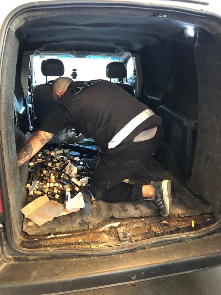 Sin embargo, confiando en la reacción del can, los agentes aduaneros decidieron inspeccionar el vehículo con mayor atención y empezaron a encontrar cuchillos ocultos detrás de sus paneles. Al finalizar el procedimiento, contaban 200 ejemplares de diversos modelos y tamaños.