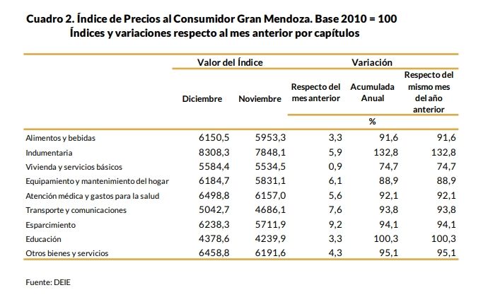 Oficial: la inflación en Mendoza rozó el 100% durante el 2022