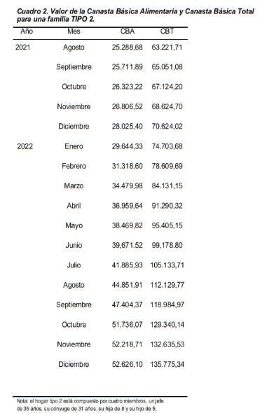 Una familia tipo, compuesta por cuatro miembros; un jefe de hogar de 35 años, su cónyuge de 31 años, su hija de 8 y su hijo de 5, precisó aproximadamente $3.000 más que en noviembre para cubrir los gastos correspondiente a la Canasta Básica Total.