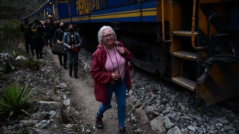 La interrupción del servicio de tren a Macchu Pichu obligó a muchos turistas a regresar a pie.