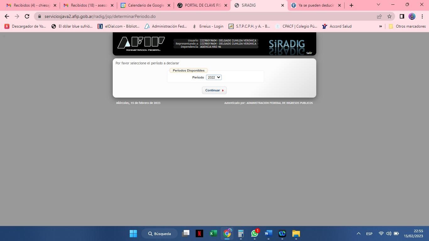 Paso 2: Ingresas donde figura tu nombre y apellido y pasas a seleccionar el año. Período 2022, como te indica las dos próximas imágenes: Continuas.