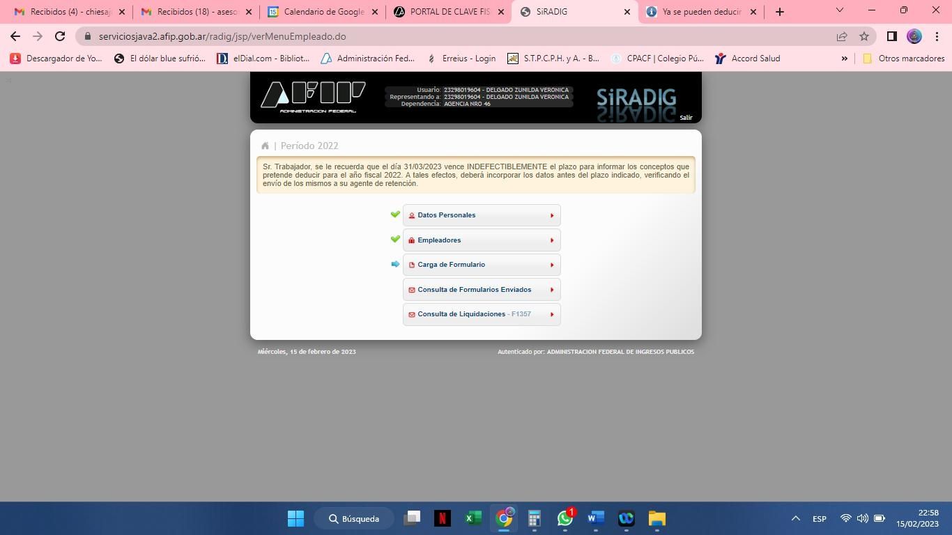 Hay que recordar que el plazo para presentar el formulario 572 para el período fiscal 2022 a través del servicio con clave fiscal “Siradig – trabajador" finalizará el 31 de marzo de 2023.
