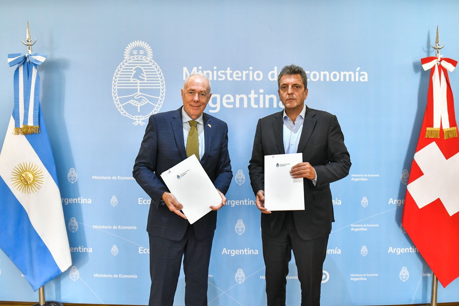 El ministro de Economía, Sergio Massa, firmó junto al embajador de Suiza, Hans Ruedi Bortis, un convenio particular con ese país para la refinanciación de la deuda que la Argentina mantiene con el grupo de países acreedores. Fue luego de cerrar el acuerdo con el Club de París el pasado octubre.