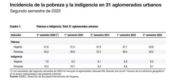 El Instituto Nacional de Estadísticas y Censos (Indec) publicó este jueves el índice de pobreza e indigencia del segundo semestre, que reveló que el 2022 concluyó con un 39,2% de pobres y un 8,1% de indigentes.