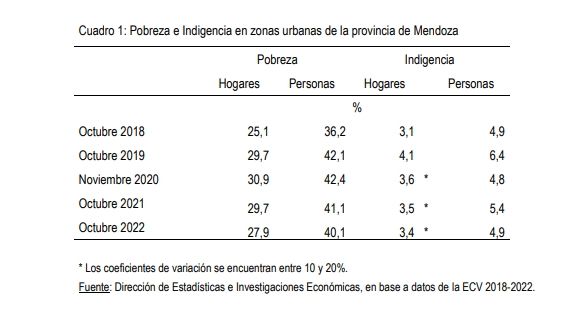 Los resultados de la indigencia y la pobreza, según lo comunicado, data de una leve baja en cuanto a los porcentajes respecto del mes de octubre de 2021 a octubre de 2022. Se toma ese mes como referencia ya que el estudio se hace una vez por año.