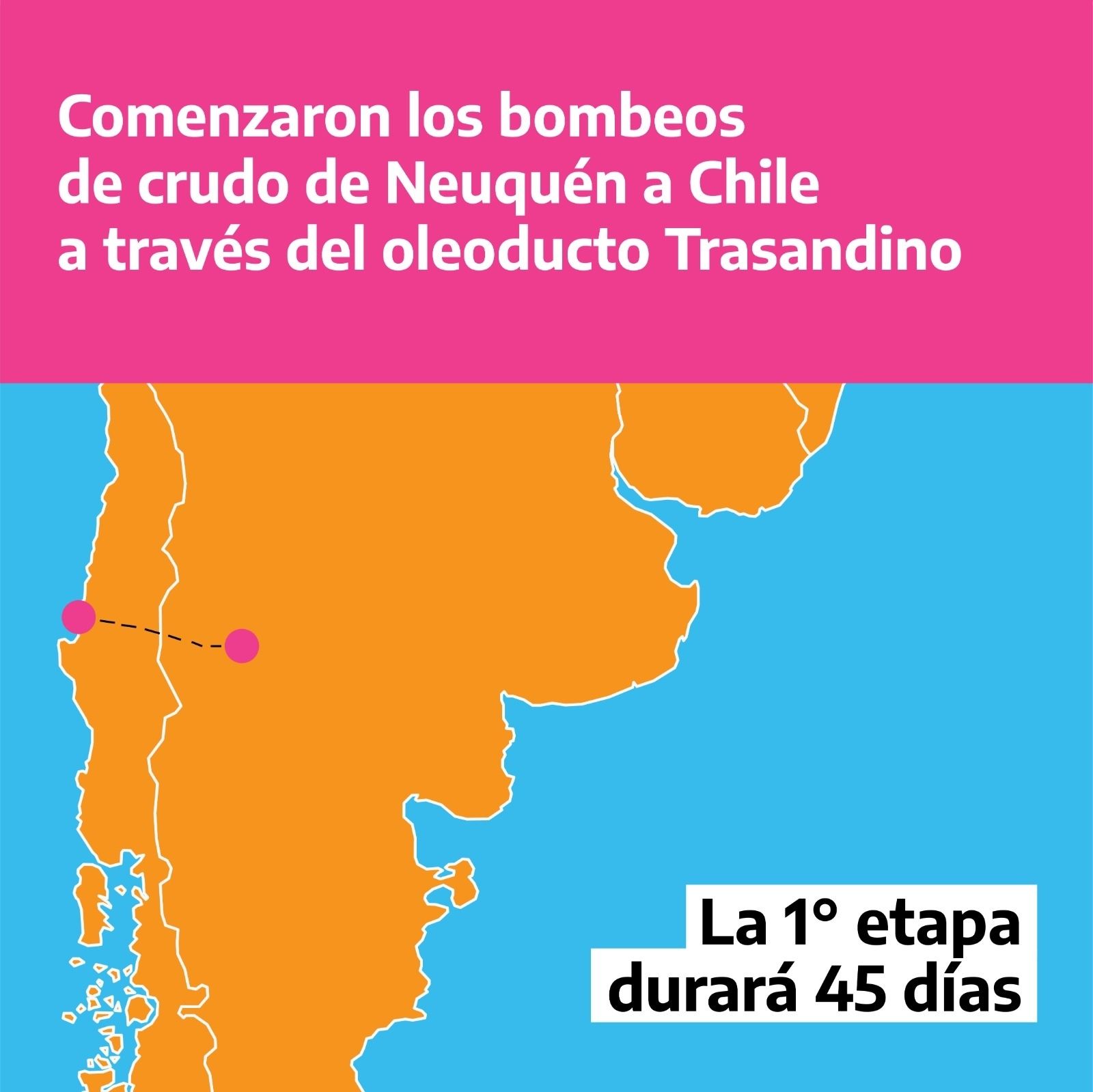 El Oleoducto Trasandino cuenta con una extensión de 427 kilómetros que permitirá transportar petróleo desde Vaca Muerta hacia Chile. Los trabajos para rehabilitar el Oleoducto Trasandino incluyeron el mantenimiento sobre las plantas de bombeo de Puesto Hernández, Pampa de Tril y La Primavera y una exhaustiva verificación del estado de la integridad de la cañería, cuya operación fue discontinuada en 2006.