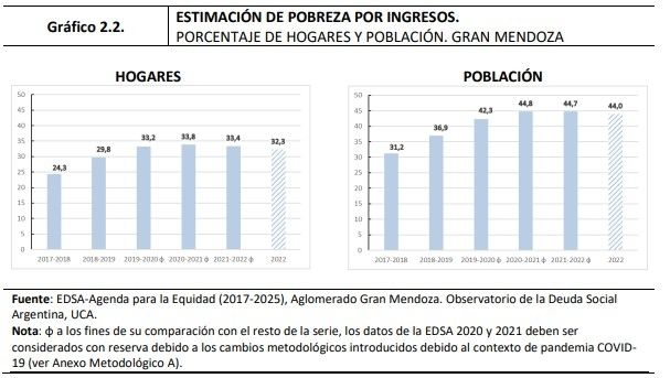 El informe “Tasas de indigencia y pobreza por ingresos monetarios. Gran Mendoza 2017-2022” expresó que en los registros para el período 2021-2022, se observó una leve mejora de la pobreza (de 44,7 a 44%) y también de la indigencia (de 8,5 a 7,6%) en la población.