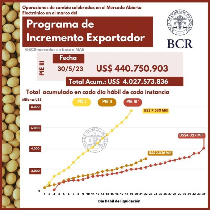 Hoy finaliza el llamado Programa de Incremento Exportador en su tercera versión, el llamado PIE III o dólar soja III, aunque el Gobierno autorizó dos días más de tiempo para liquidar divisas para compensar la inactividad del último feriado y de paso incentivar a quienes esperan a último momento.