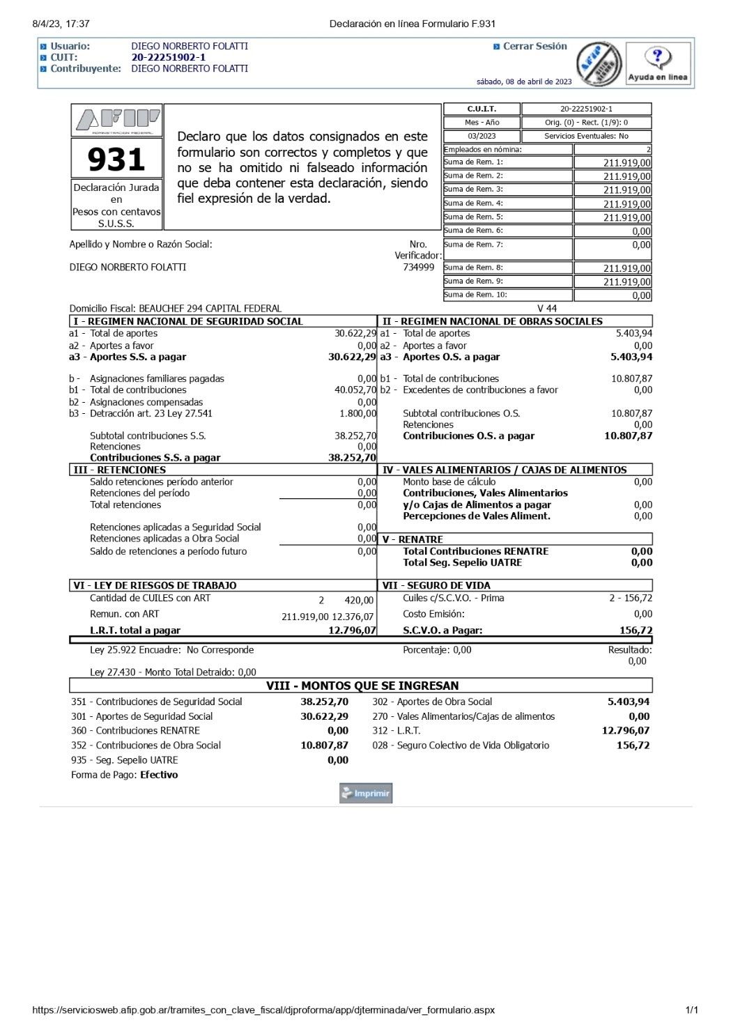 Veamos un ejemplo: Aclaración: ejemplo tomado es de un empleador con dos empleados de un salario Neto $105.959 cada uno como Ayudante cocina en el CCT 24/88 locales de pizzerías. Sindicato de pizzeros, Federación de Pasteleros de media jornal. Cada empleado percibe $105.959, en el bolsillo le queda $87.950 (17% aportes). A la empresa, los dos empleados, le representan un costo laboral $98.036 (30% contribuciones más ART).