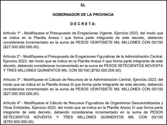 El gobierno de Mendoza, mediante un decreto publicado en el Boletín Oficial en las últimas horas, amplió su presupuesto en más de $27 mil millones debido a una mayor recaudación, producto de la inflación.