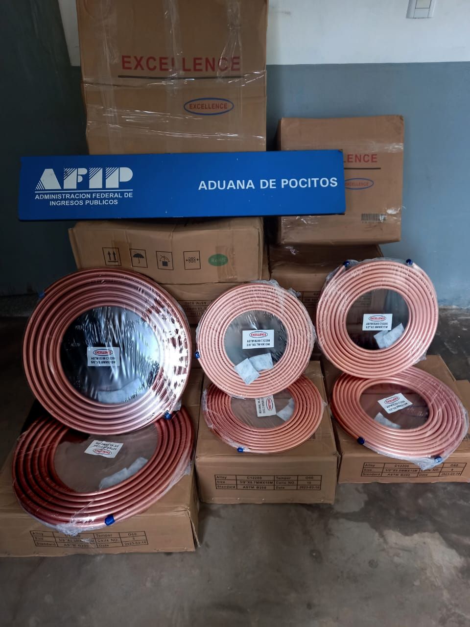 Los agentes aduaneros verificaron el contenido de las 11 cajas y constataron la presencia de 70 rollos de caños de cobre, que son usados para refrigeración, de diferente extensión y grosor. El valor estimado de la mercadería asciende a $6.260.000.