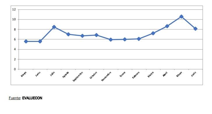 Según el IPC medido por la consultora Evaluecon, los aumentos en junio se notaron fuerte durante la primera quincena mientras que en la segunda hubo cierta morigeración en los incrementos. Este estudio lo atribuye a la dificultad de llegar a fin de mes y la falta de poder adquisitivo de los argentinos.