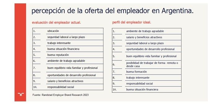 El estudio remarca la brecha entre lo que el talento quiere y lo que percibe, respecto de lo que ofrecen las empresas como propuesta de valor. Del mismo modo, Andrea Ávila, CEO de Randstad para Argentina, Chile y Uruguay, afirmó que dicho descalce entre lo que los candidatos prefieren y lo que perciben sobre la oferta de los empleadores marca dónde están los espacios de mejora dentro de las organizaciones.