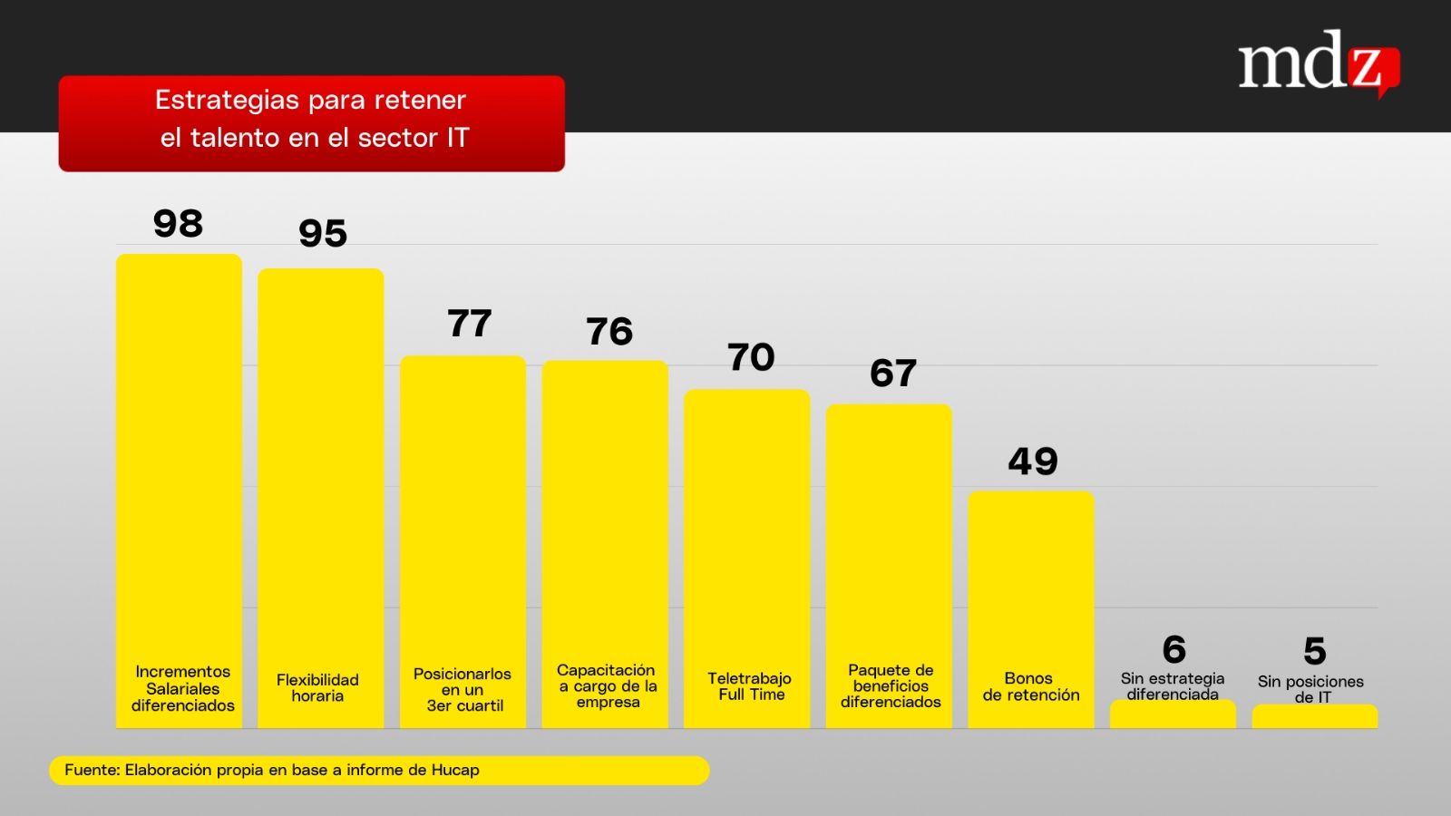 Entre las estrategias que aplican las empresas para retener y atraer las posiciones más demandadas de IT se destacan: