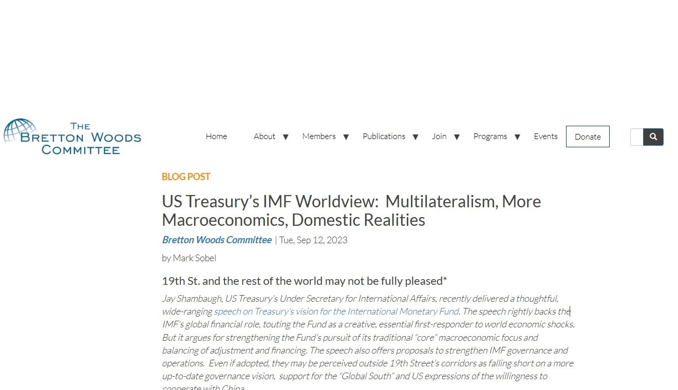 “No llores por mí Argentina. Argentina es la palabra tácita en una fuerte crítica a las normas de préstamo del FMI”, señaló Mark Sobel, exrepresentante del Tesoro ante el FMI en un documento publicado en la web de Bretton Woods Committee.