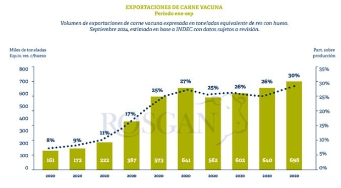 El peso final dependerá del descuento del desposte que confirma la Secretaría de Agricultura, Ganadería y Pesca. De ser así, se habrán acumulado 698.000 toneladas en lo que va del año, 9% más de lo enviado entre enero y septiembre de 2023 (640.000 toneladas).