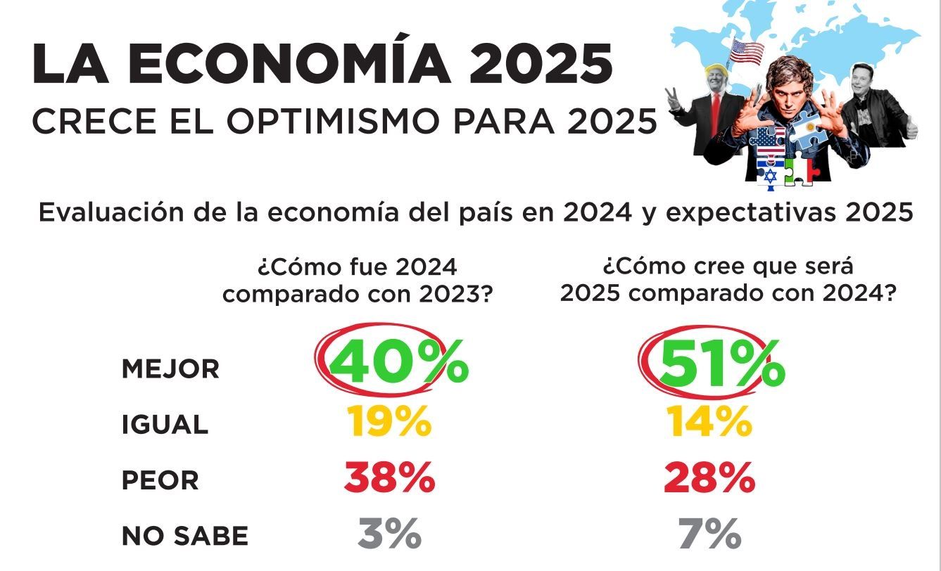El relevamiento de opinión realizado por los analistas políticos concluyó en que los argentinos mantienen la esperanza en el crecimiento del país a pesar de no estar viendo con claridad los resultados. Tal es así que el 51% de los encuestados creen que la situación económica puede mejorar para 2025.