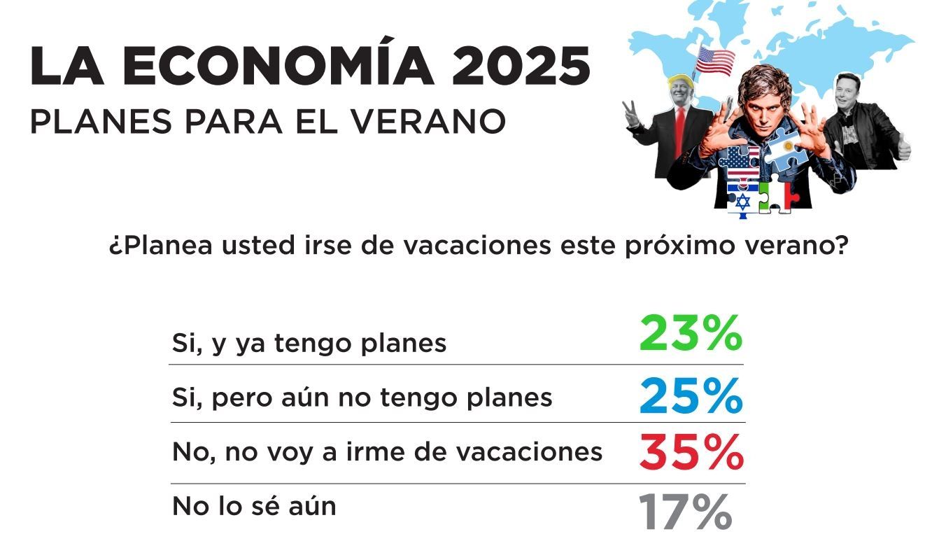 Una pregunta no menos importante giró en torno a los planes de vacaciones. Sobre este punto los encuestados reconocieron en un 35% que no se tomarán en receso anual. Por su parte, el 25% sostuvo que tiene pensado hacer algún viaje, aunque todavía no concretó a donde. Finalmente, el 23%, ya tiene proyectado su descanso anual.
