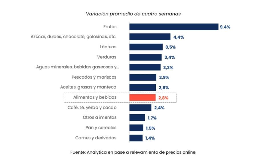 Las proyecciones de esta consultora indican que el aumento para las próximas semanas podría alcanzar 0,7%, en tanto se anima a vaticinar una inflación mensual del 2,8% para el rubro de alimentos.
