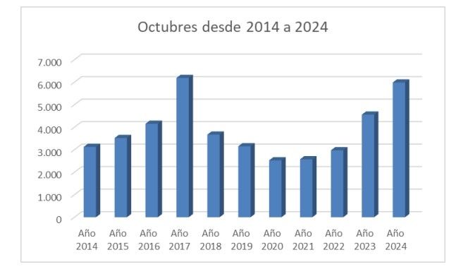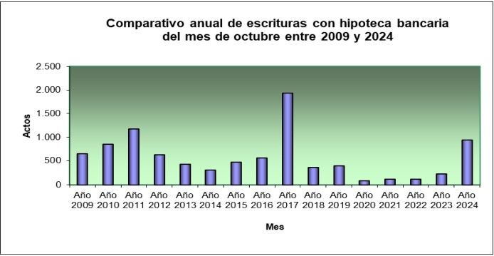 Si se toman los datos obtenidos en septiembre, el incremento de los actos constitutivos fue de 16,1%. De estas nuevas escrituras, 944 se formalizaron con financiación por hipoteca, esto representa un alza del 300% respecto de octubre del año pasado y un incremento acumulado del 113% de adquisiciones por medio de esta forma de financiación.