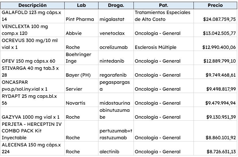 Según el último nomenclador, los 10 medicamentos más costosos son los siguientes