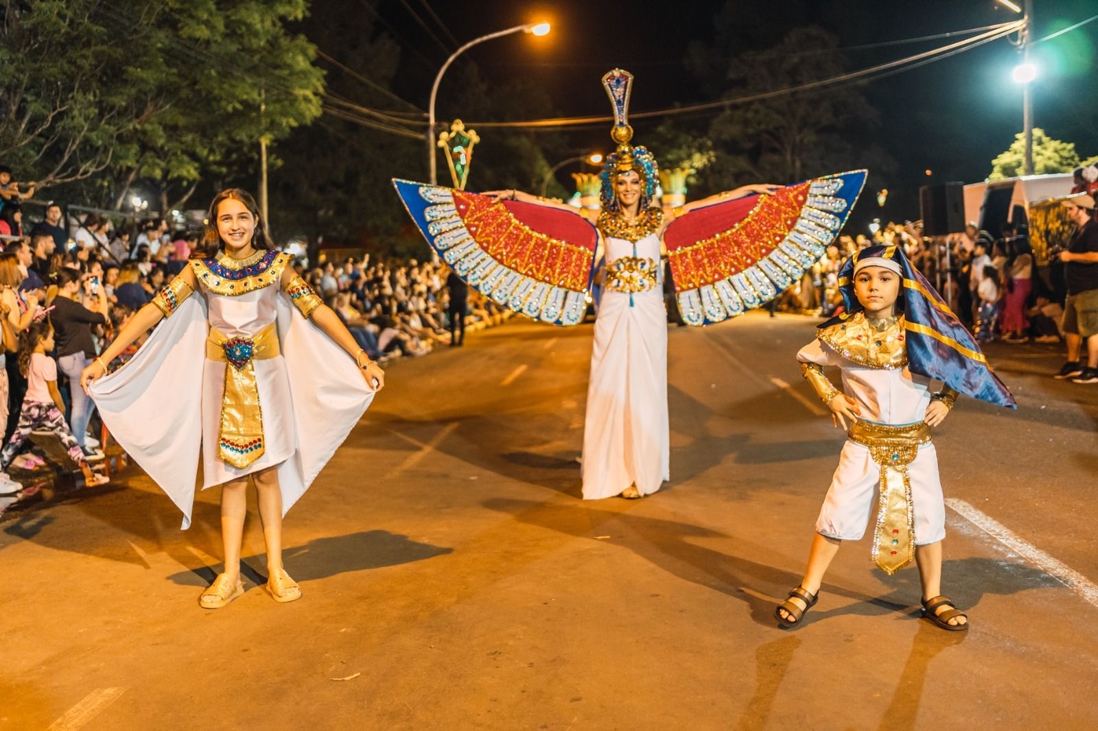 Además de los números artísticos en el escenario y de todas las propuestas de la cartelera, un plato fuerte del evento es el desfile de carrozas que se desenvuelve como una gran puesta teatral a cielo abierto y por seis cuadras, frente al parque.