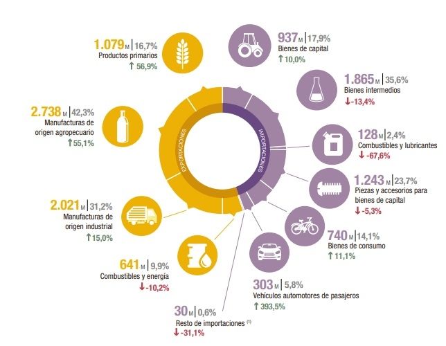El intercambio comercial argentino (exportaciones + importaciones) totalizó 11.723 millones de dólares en noviembre, con una suba de 12,7% interanual.