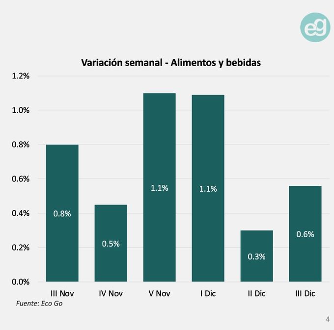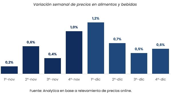 La medición de Analytica, por su parte, marca una suba del 0,7% en alimentos y bebidas en la semana, con un promedio del 2,8% para el mes.