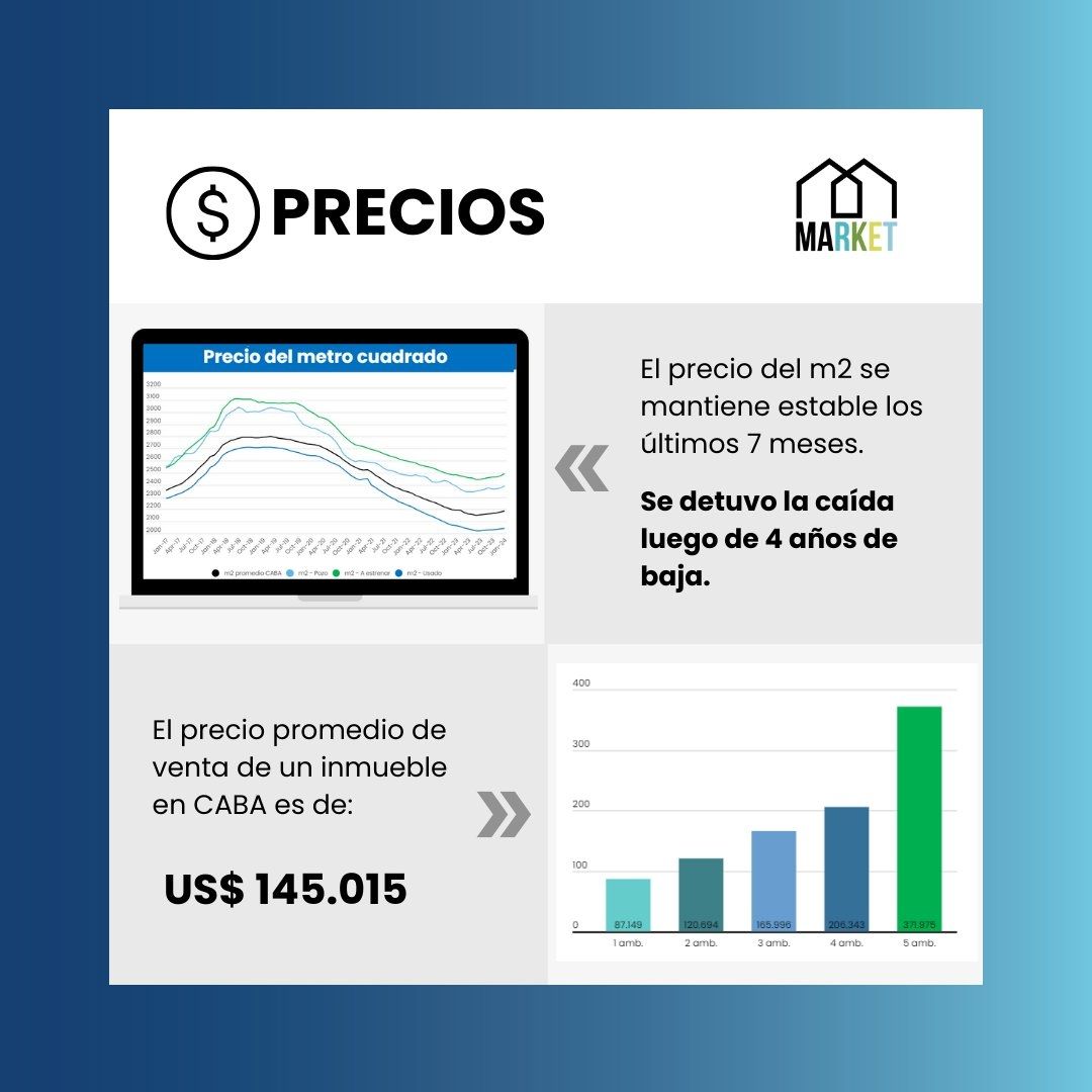 Según el reciente informe de Market, elaborado por Monitor Inmobiliario, los precios se mantienen estables en los últimos siete meses. El m2 usado está en U$S 2.043, pozo U$S 2.391 y a estrenar U$S 2.492.