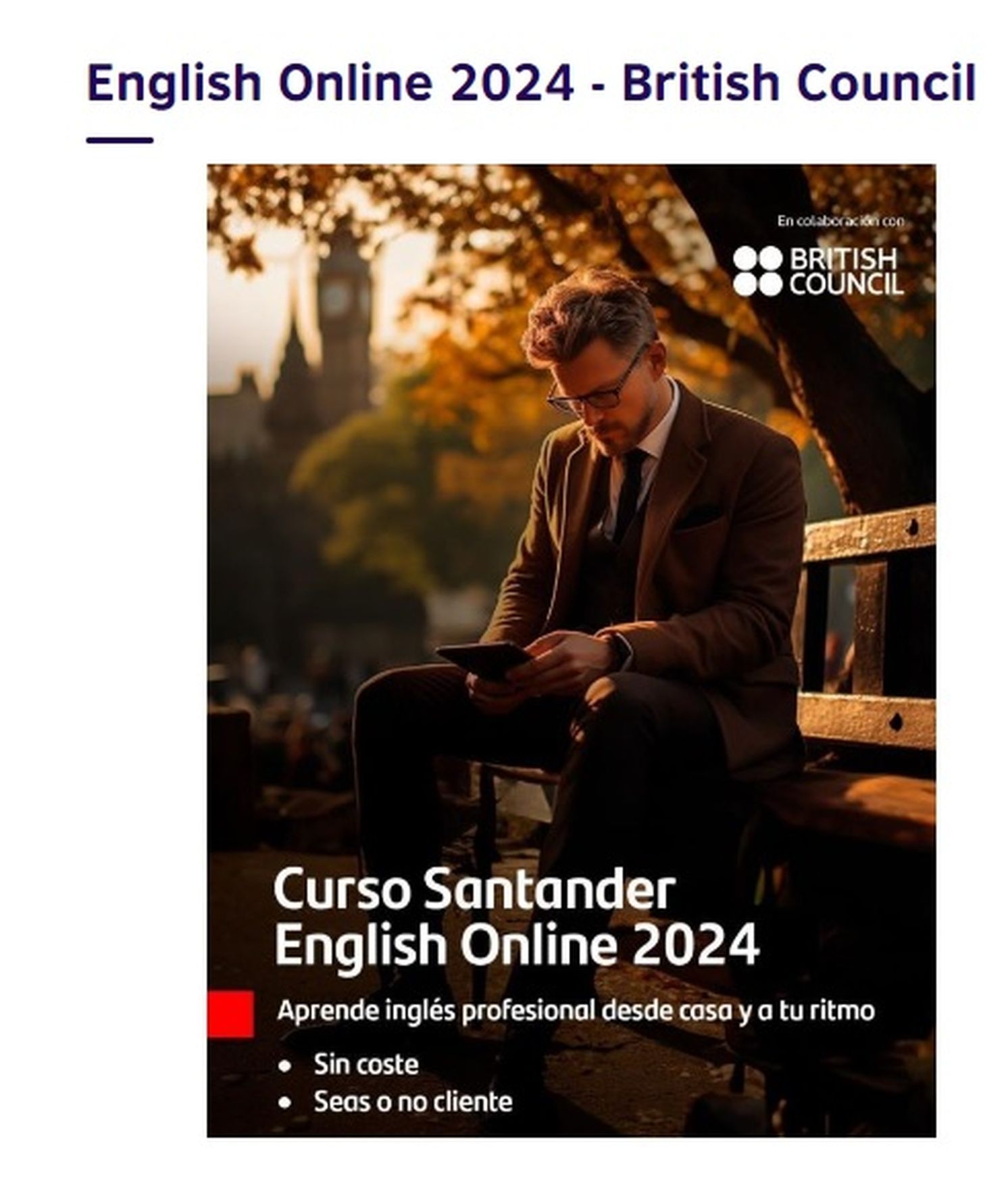 El Banco Santander lanzó una nueva edición del Curso Santander English Online 2024 - British Council, que ofrece 8.000 becas de estudio para el idioma inglés a mayores de 18 años residentes en Argentina, Alemania, Chile, Colombia, Brasil, México, EE.UU., España, Portugal, Perú, Polonia, Reino Unido y Uruguay.