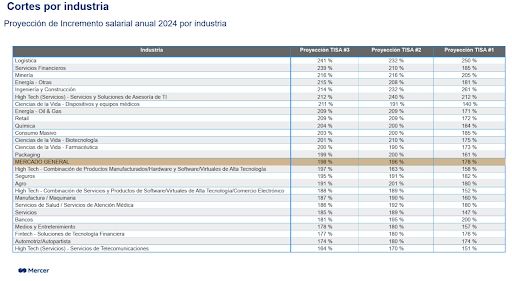 proyecciones salariales de las empresas en el país.