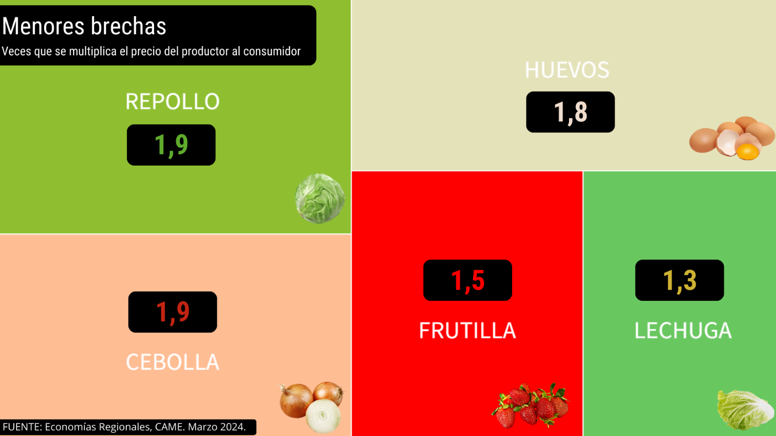 La brecha en los productos frutihortícolas y en los ganaderos