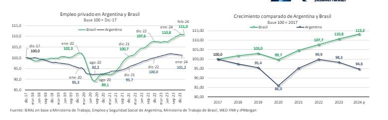 Entre los proyectos planteados está pendiente una reforma laboral que podría tener impacto profundo y rápido es el de la modernización del funcionamiento del mercado laboral. Con una mirada en lo que sucedió en Brasil, el análisis detalló que desde que se realizó en cambio en el país vecino se generaron 3,75 millones de nuevos puestos de trabajo privados formales. En ese lapso, en Argentina se crearon 68,4 mil creados.